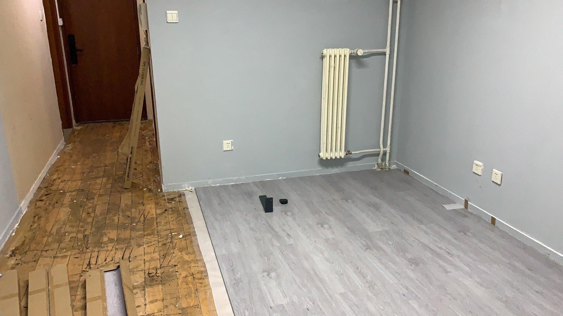 房间此前是用作办公的,地面上贴着厚厚的办公地毯,遮蔽着下面房屋精装交付时的木地板,墙面斑驳但没有伤及腻子层,房间内也没有什么家具家电 —— 这一切都在挑拨我「动手」「改造」的神经。因此鬼使神差之下,我们即刻签署了协议,还争取到了一个月的装修免租期。