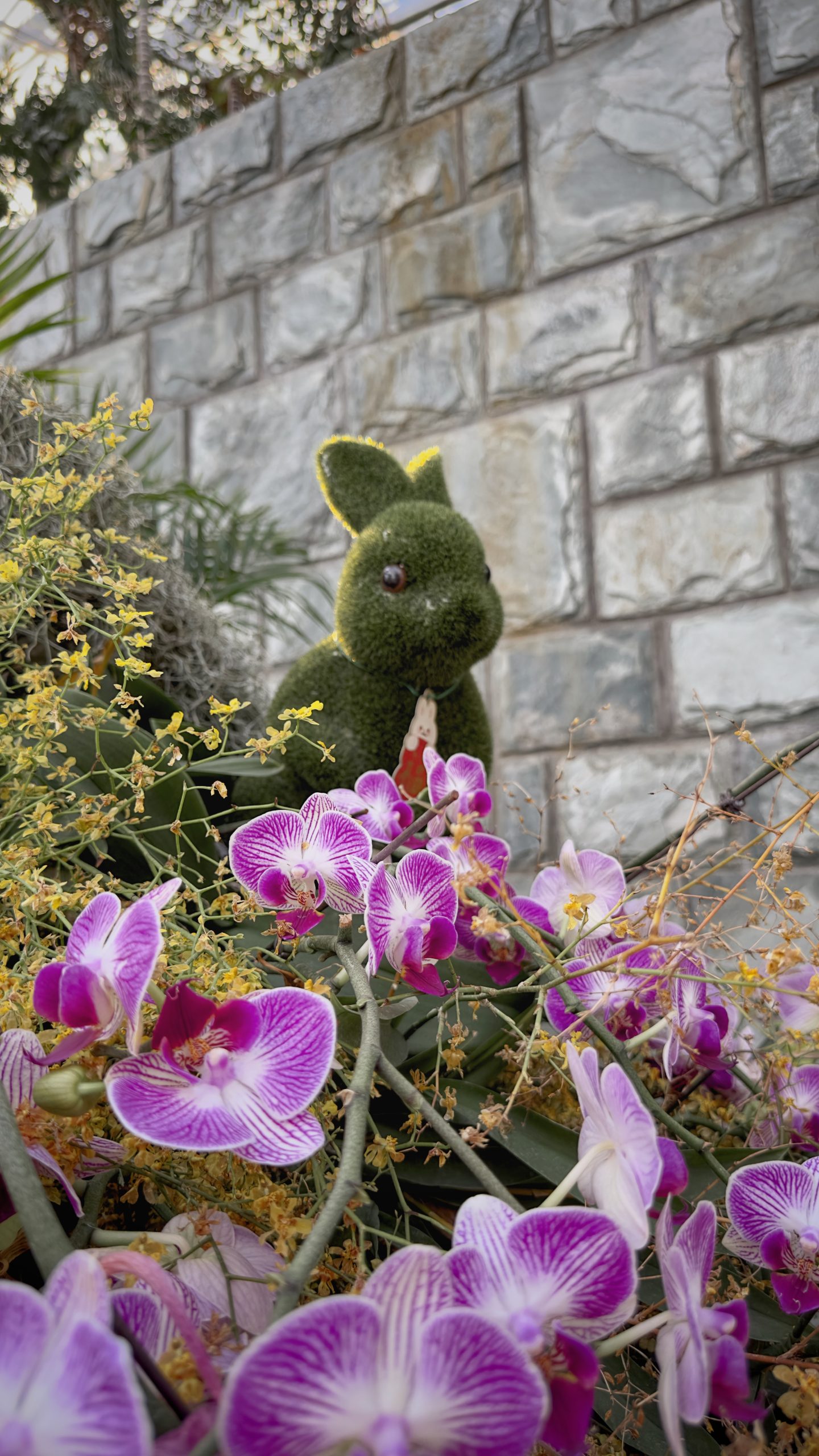 受疫情防疫影响,长期关闭的植物园温室已经开放,价格为40元/人。买票走进温室的那一瞬间,就能感受到清冷的冬季空气被阻隔在外,温室内的空气湿润而温热,令人立即脱掉冬季的大衣。再一回头,玲琅满目全是各种颜色的蝴蝶兰,契合新年的加装了不少兔子装饰。